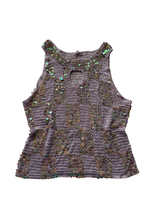 Purple Sequin Mesh Tank Top l 8-10