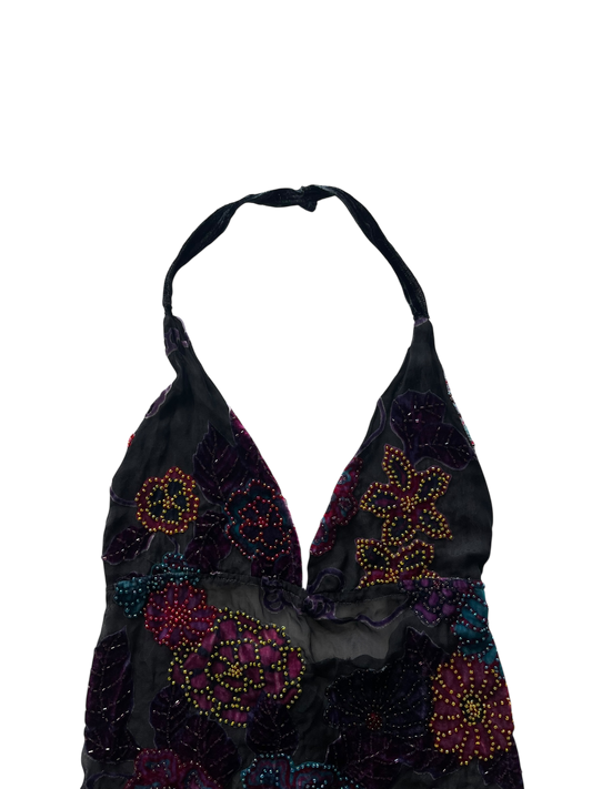 Floral Rhinestone Backless Halter Top l 4-6